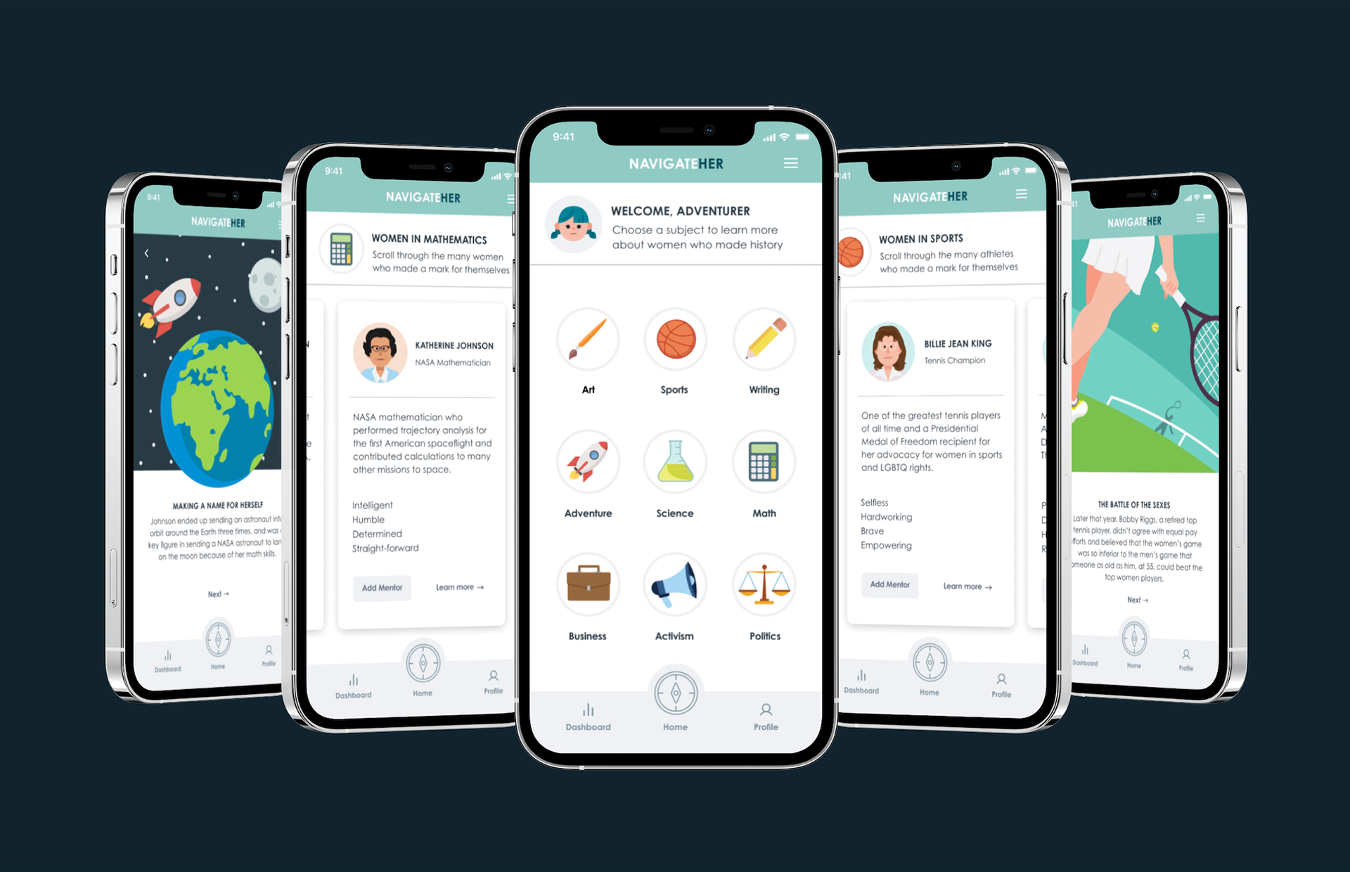 Navigateher is an app for young girls, aged 8-12, and it’s mission is to encourage and empower young girls to break barriers and be the best version of themselves. To inspire them through the storytelling of feminist activists and influential women of the past.